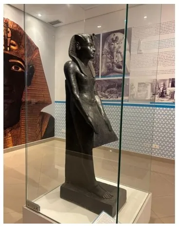 Figura 6: Réplica da estátua do faraó Tutankhamon, encontrada dentro do templo de Amon, em Karnak. Feita de granito com as dimensões reais do faraó. Foto tirada no Museu Egípcio e Rosacruz -Tutankhamon, em Curitiba – PR.