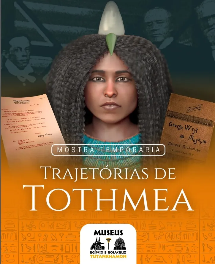 A miniexposição conta com cerca de 25 itens que remontam os caminhos de Tothmea desde sua saída do Egito no século XIX até a chegada em Curitiba, em 1995.